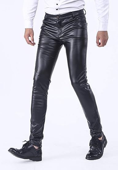 Men's Business Slim Fit Five Pockets Faux Leather Pants Jeans